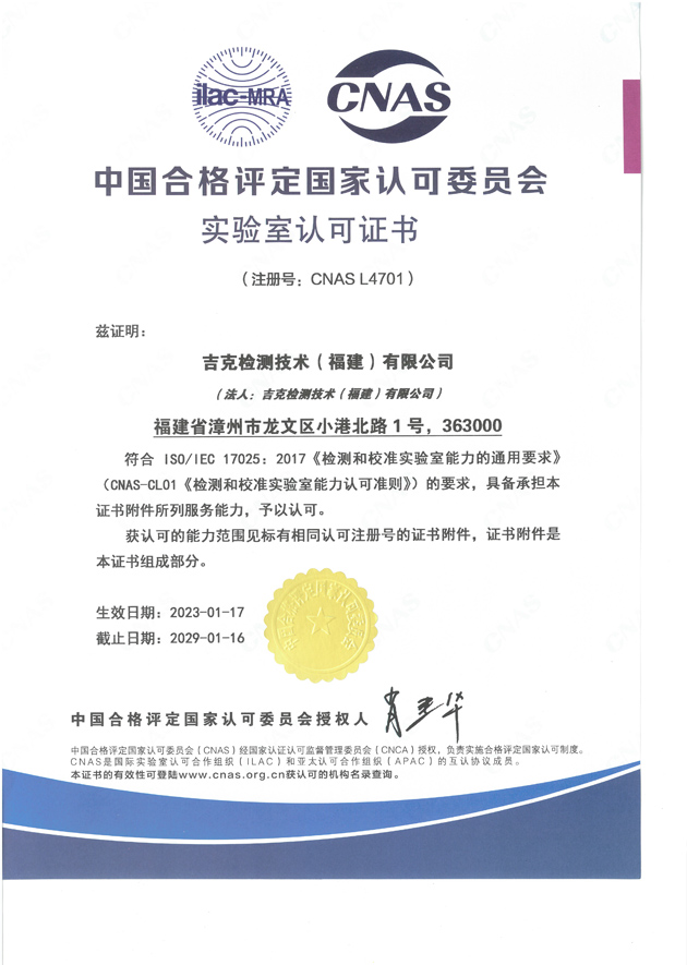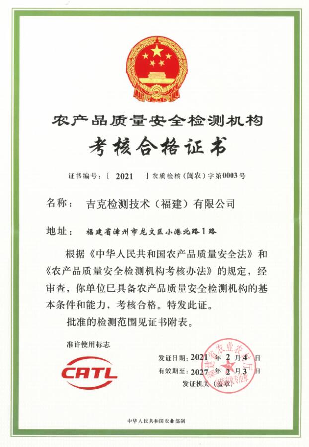 吉克檢測技術(shù)(福建)有限公司,位于福建省漳州市龍文區(qū)小港北路1號,于2019年8月注冊成立,是一家獨(dú)立的第三方檢測公司。公司已經(jīng)通過檢驗(yàn)檢測機(jī)構(gòu)計(jì)量認(rèn)證(CMA)、農(nóng)產(chǎn)品質(zhì)量安全檢測機(jī)構(gòu)資質(zhì)認(rèn)證(CATL),獲得中國合格評定國家認(rèn)可委員會(CNAS)認(rèn)可。公司本著“嚴(yán)謹(jǐn)、規(guī)范、高效、協(xié)作”的原則和對客戶及社會高度負(fù)責(zé)的精神,充分利用本公司優(yōu)質(zhì)的檢測環(huán)境、先進(jìn)的檢測設(shè)備和專業(yè)的技術(shù)人員,第一時間為客戶提供科學(xué)、公正、準(zhǔn)確的檢驗(yàn)檢測報(bào)告。 公司實(shí)驗(yàn)室面積1100多平方米,儀器設(shè)備兩百多臺(套),固定資產(chǎn)一千多萬元,在職員工31人,技術(shù)人員中的中高級職稱及同等能力人數(shù)占60%以上。我們的服...